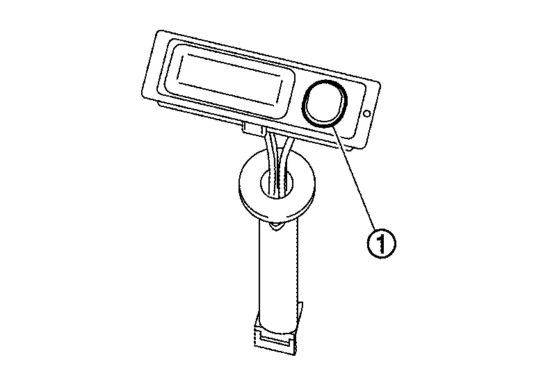 Front door request switch (RH) (1) is integrated into the front outside handle assembly RH.