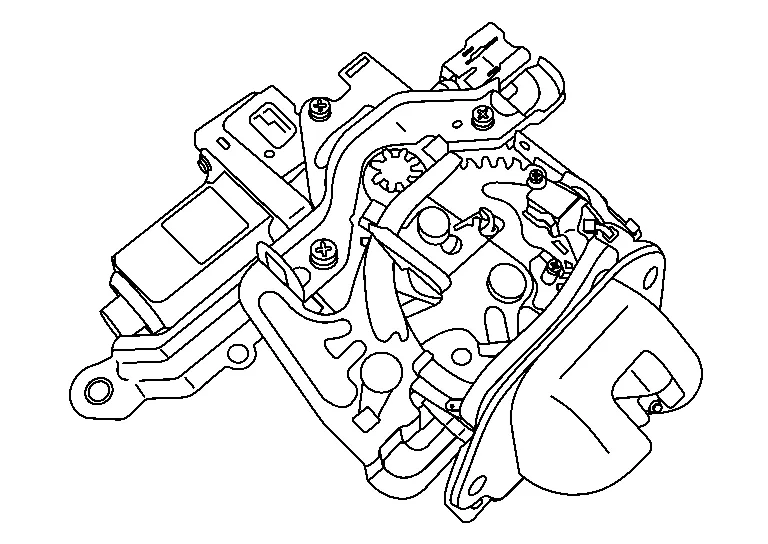 Closure motor: Inputs open/close signal from automatic back door control module and activates the back door auto closure operation.