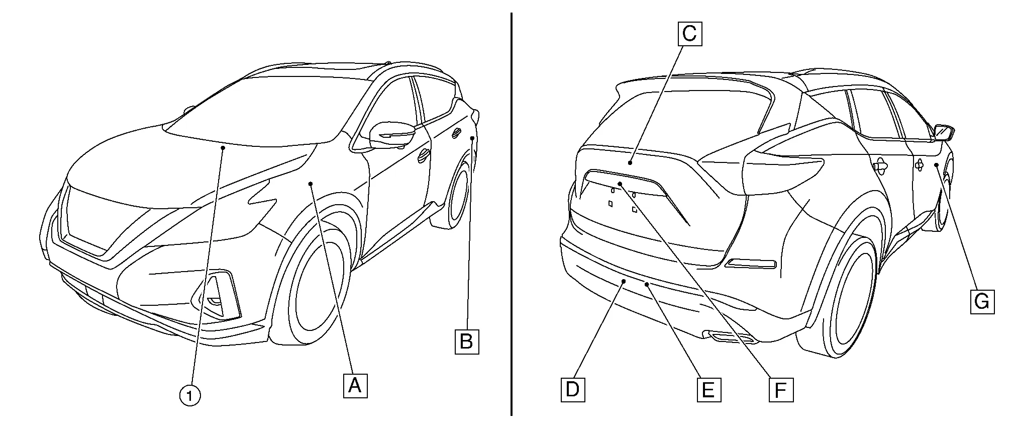 | 14. | Back door opener switch | Refer to Back Door Opener Switch. |