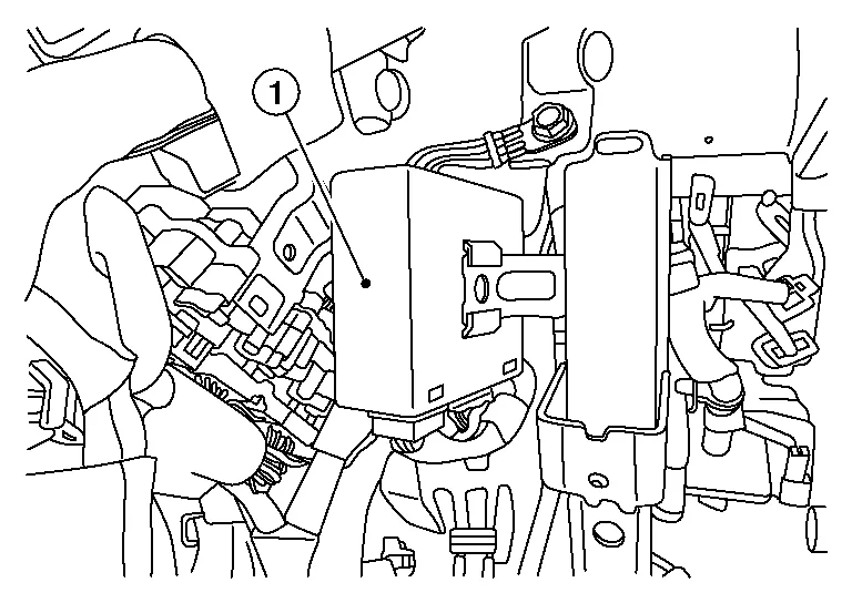 Disconnect the two harness connectors from the automatic drive positioner control unit (1) and remove.