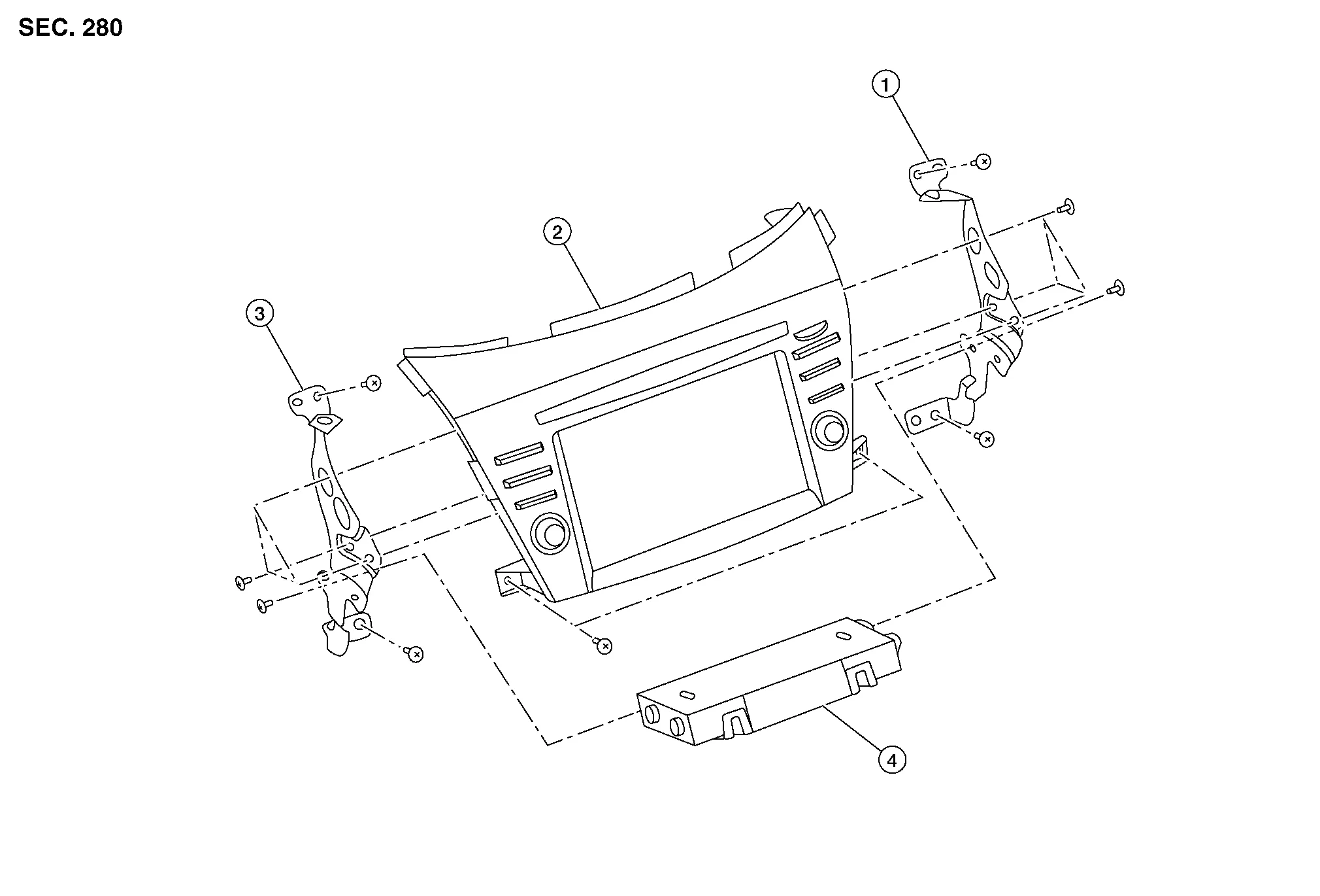 | 1. | AV control unit bracket (RH) | 2. | AV control unit | 3. | AV control unit bracket (LH) |