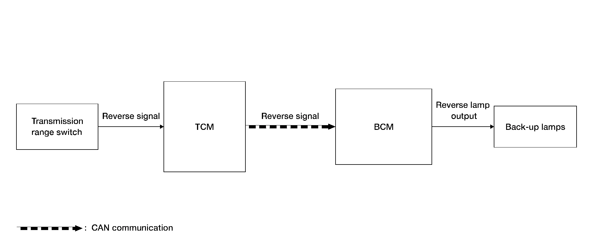 TCM sends request signal via CAN communication and turns the back-up lamps on when back-up lamp conditions are satisfied.