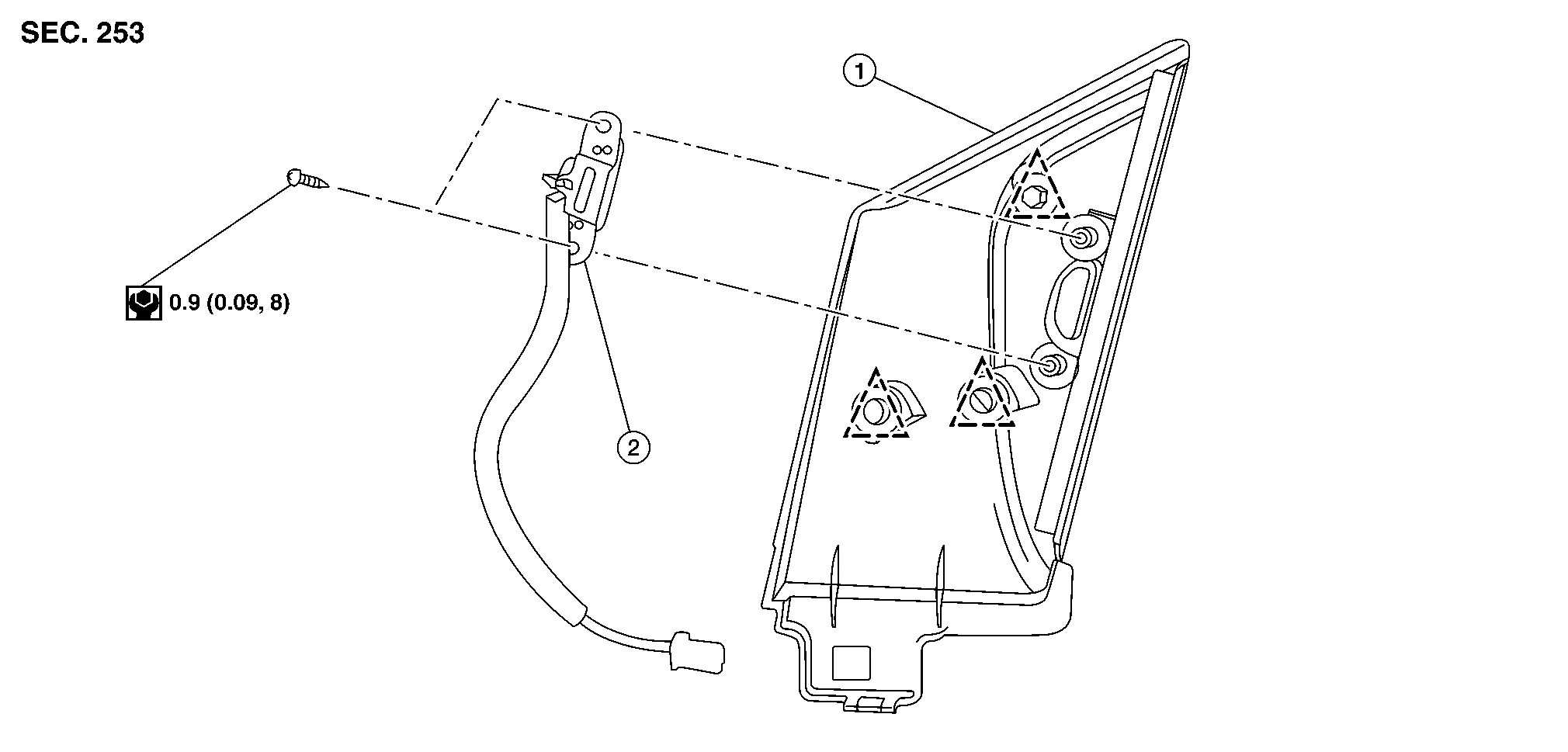 Remove screws and remove blind spot warning indicator.