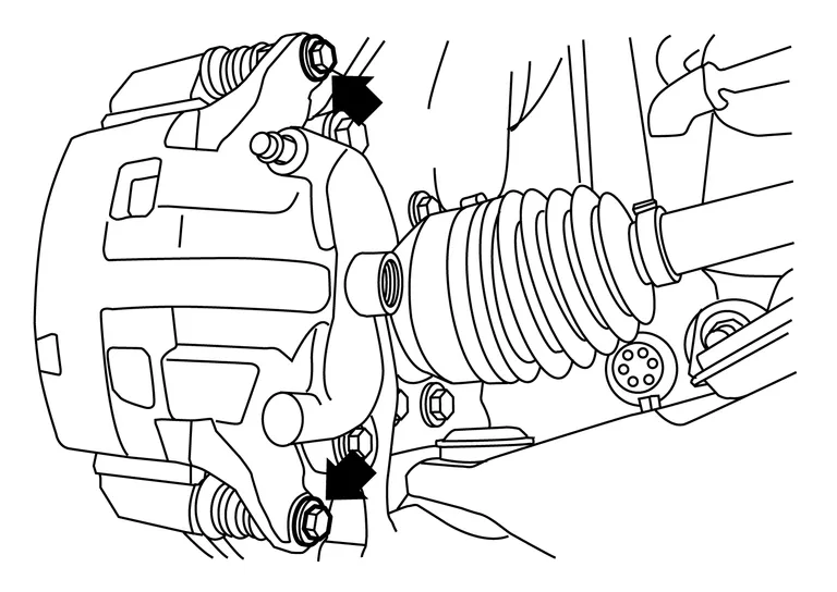 Position the brake caliper to torque member and install the slide pin bolts. Tighten to specification.