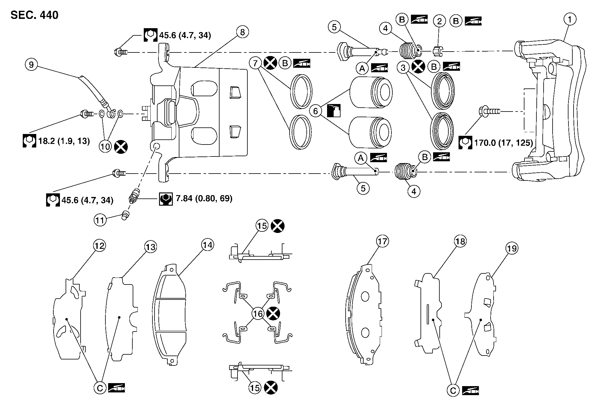 | 13. | Inner shim | 14. | Inner pad | 15. | Pad retainer |