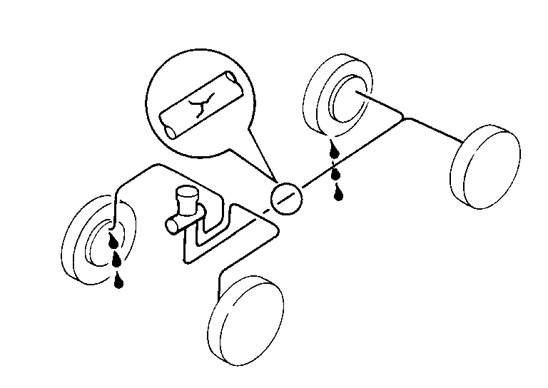 If brake fluid leakage occurs around joints, retighten or replace damaged parts as necessary.