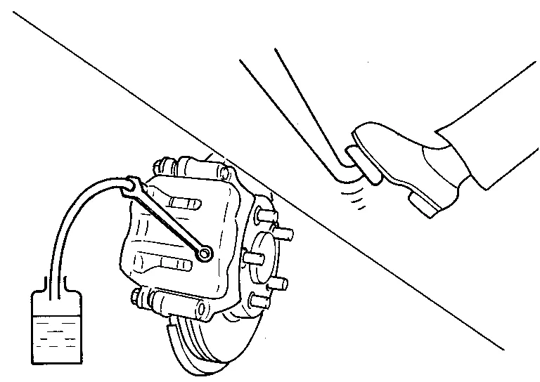 Depress brake pedal, loosen bleeder valve, and gradually remove brake fluid.
