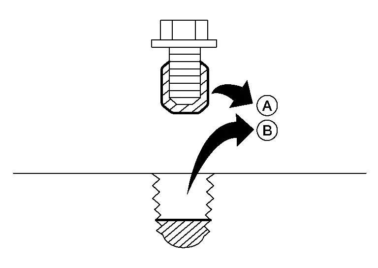 Remove the old Silicone RTV Sealant (A) from the bolt holes (B) and threads.