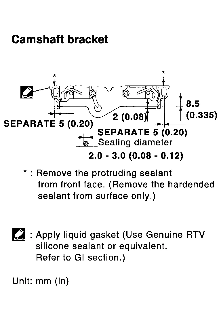 Before installation, wipe off any protruding sealant from front face of camshaft bracket. Refer to Precaution for Liquid Gasket.