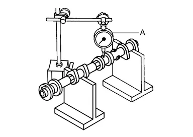 Turn camshaft in one direction slowly by hand, measure the camshaft runout on the dial gauges.