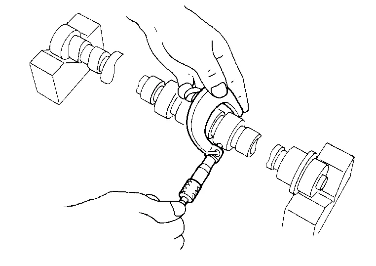 Measure outer diameter of camshaft journal as shown. Refer to Camshaft.