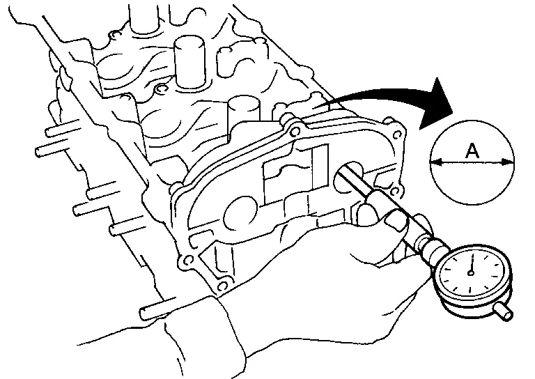 Using inside micrometer, measure inner diameter (A) of camshaft bearing. Refer to Camshaft.