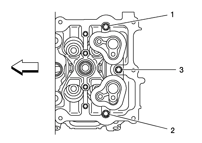 | 1. | Camshaft position sensor bracket (bank 1) | 2. | Camshaft brackets | 3. | No. 1 camshaft bracket (bank 1) |