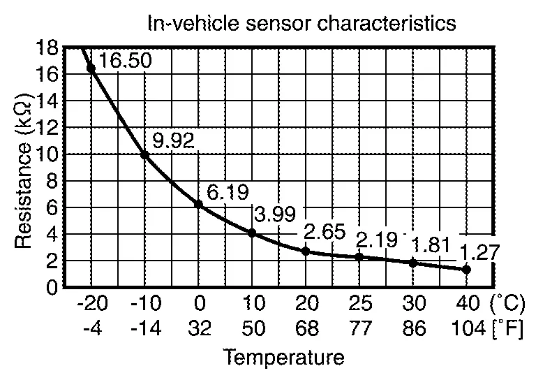 In-vehicle sensor measures temperature of intake air that flows through aspirator to passenger room. The sensor uses a thermistor which is sensitive to the change in temperature. The electrical resistance of the thermistor decreases as temperature increases.