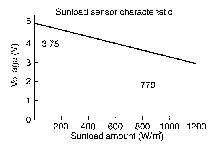 Sunload sensor measures sunload amount. This sensor converts sunload amount to voltage signal by photodiode and transmits to A/C auto amp.