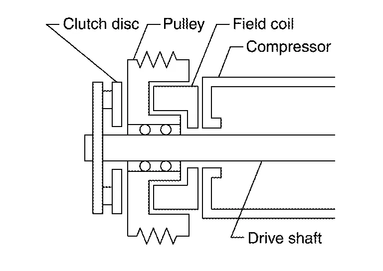 Clutch disc is connected with drive shaft of A/C compressor.