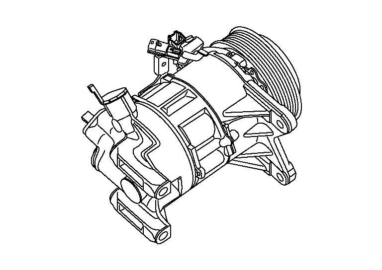 When A/C relay integrated in IPDM E/R turns ON, electricity is supplied to field coil, clutch disc is presses to pulley, and engine rotational movement is transmitted from crankshaft pulley ⇒ drive belt ⇒ pulley ⇒ clutch disc ⇒ drive shaft. A/C compressor is operated. When A/C relay turns OFF, electricity is not supplied to field coil, and clutch disc is released from pulley. A/C compressor is not operated.