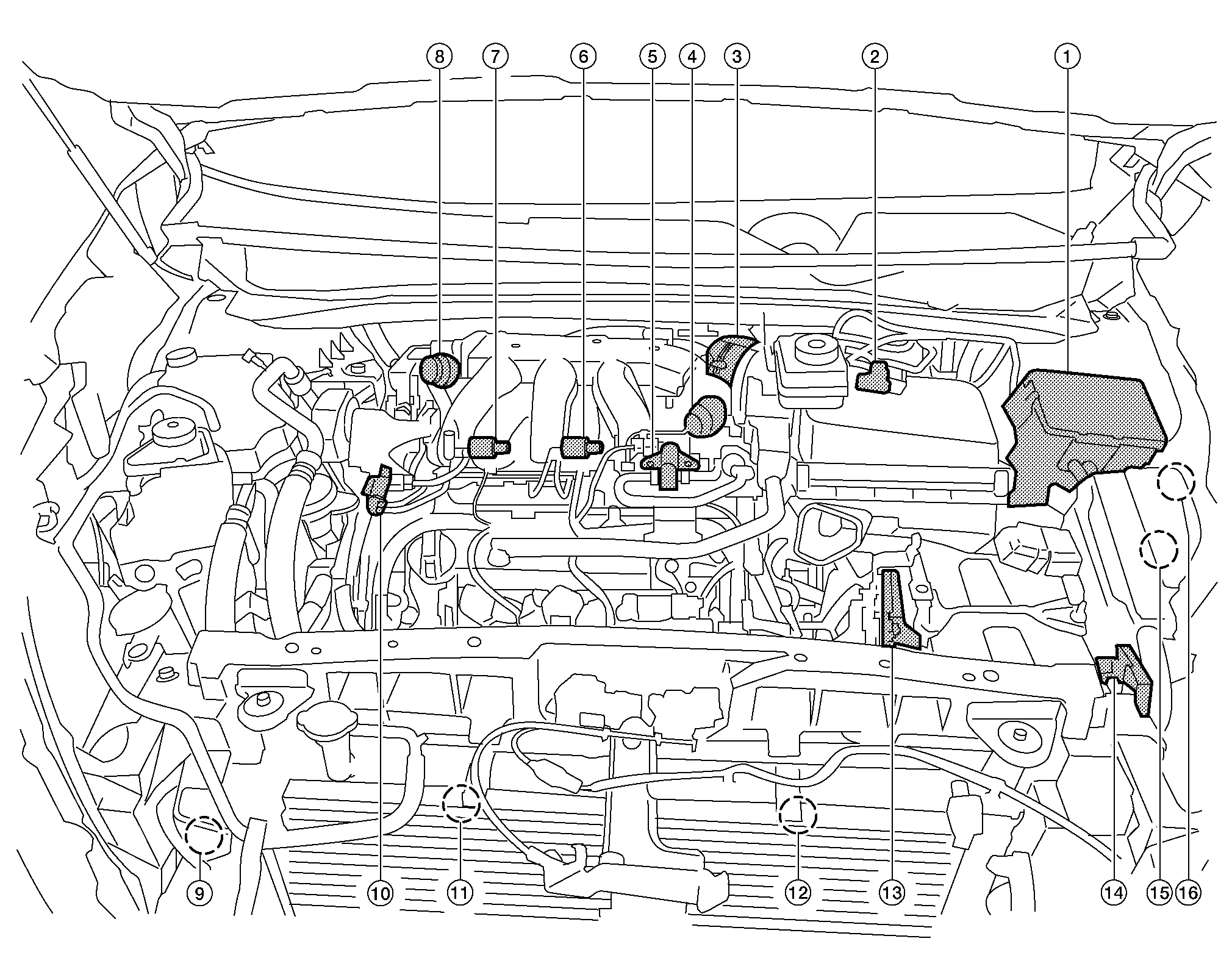 IPDM E/R activates the internal control circuit to perform the relay ON-OFF control according to the input signals from various sensors and the request signals received from control units via CAN communication. Refer to Component Parts Location for detailed installation location. |