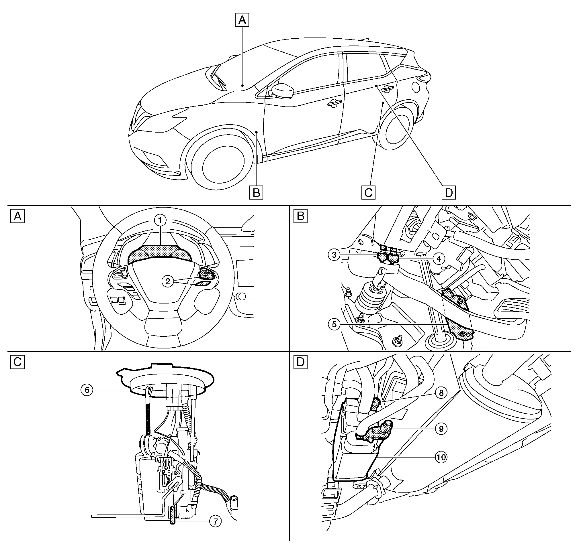 Fuel Level Sensor Unit and Fuel Pump (With Fuel Tank Temperature Sensor) Refer to Exploded View for detailed installation location. |