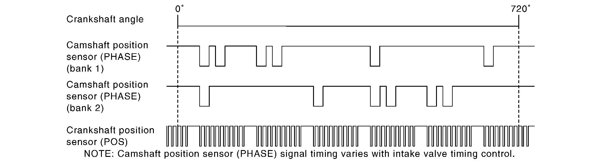 The camshaft position sensor (PHASE) senses the retraction of intake camshaft to identify a particular cylinder. The camshaft position sensor (PHASE) senses the piston position.