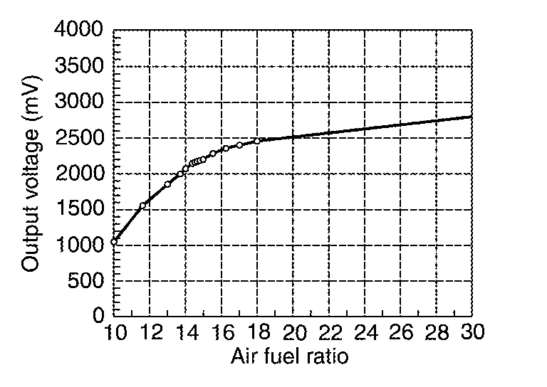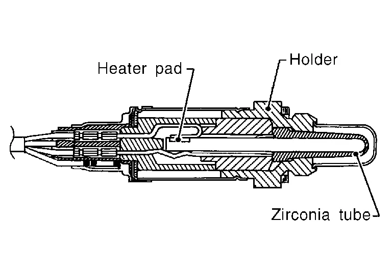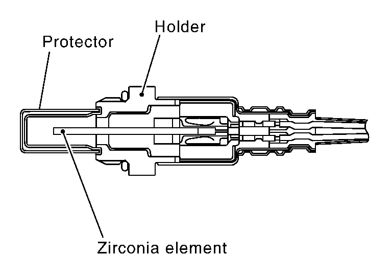 This sensor is made of ceramic zirconia. The zirconia generates voltage from approximately 1 V in richer conditions to 0 V in leaner conditions.