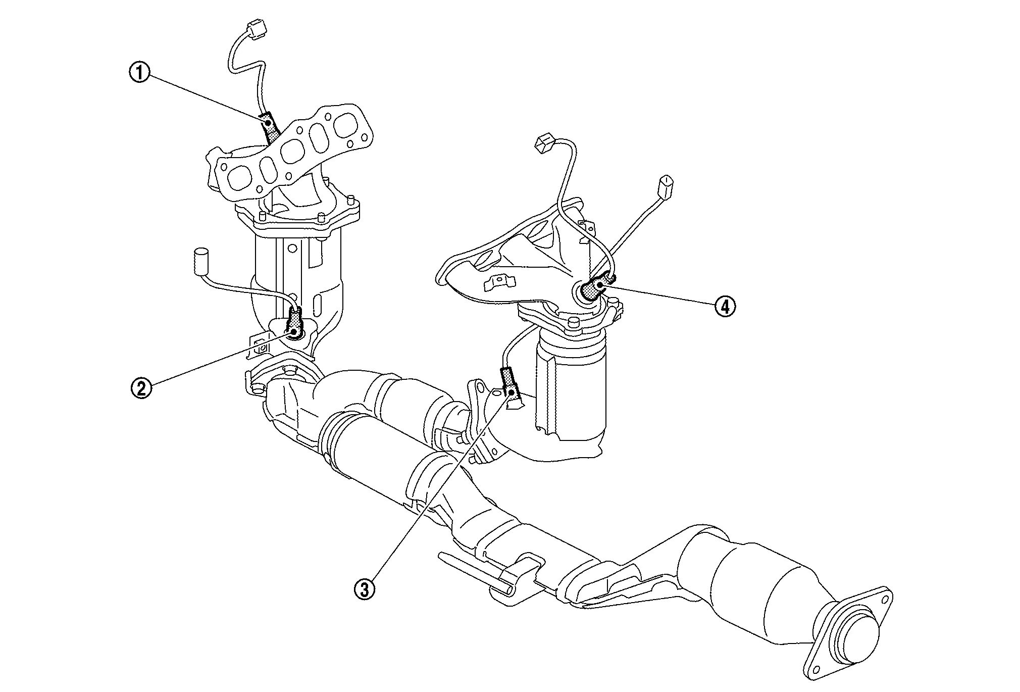 The heated oxygen sensor 2, after three way catalyst (manifold), monitors the oxygen level in the exhaust gas.