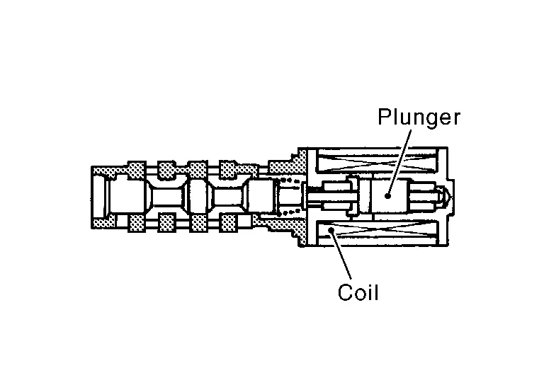 The intake valve timing control solenoid valve changes the oil amount and direction of flow through intake valve timing control unit or stops oil flow.