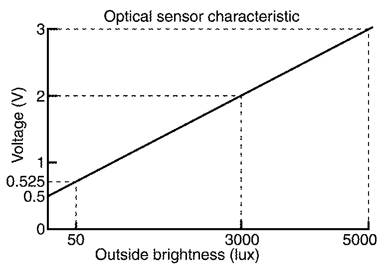 Optical sensor converts the outside brightness (lux) to voltage and transmits the optical sensor signal to BCM.