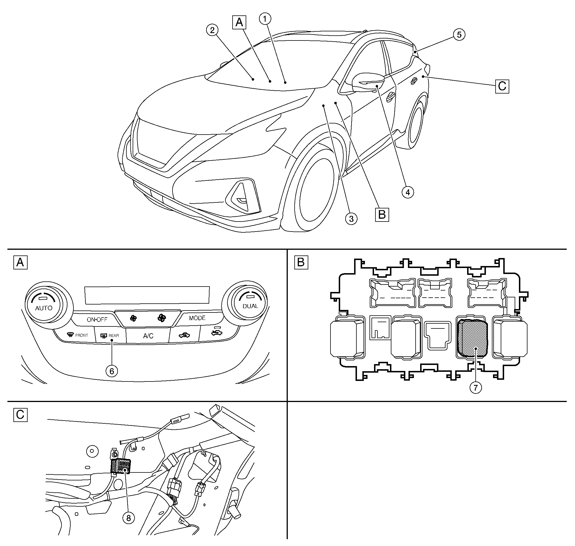 | 5. | Rear window defogger | Refer to Rear Window Defogger. |