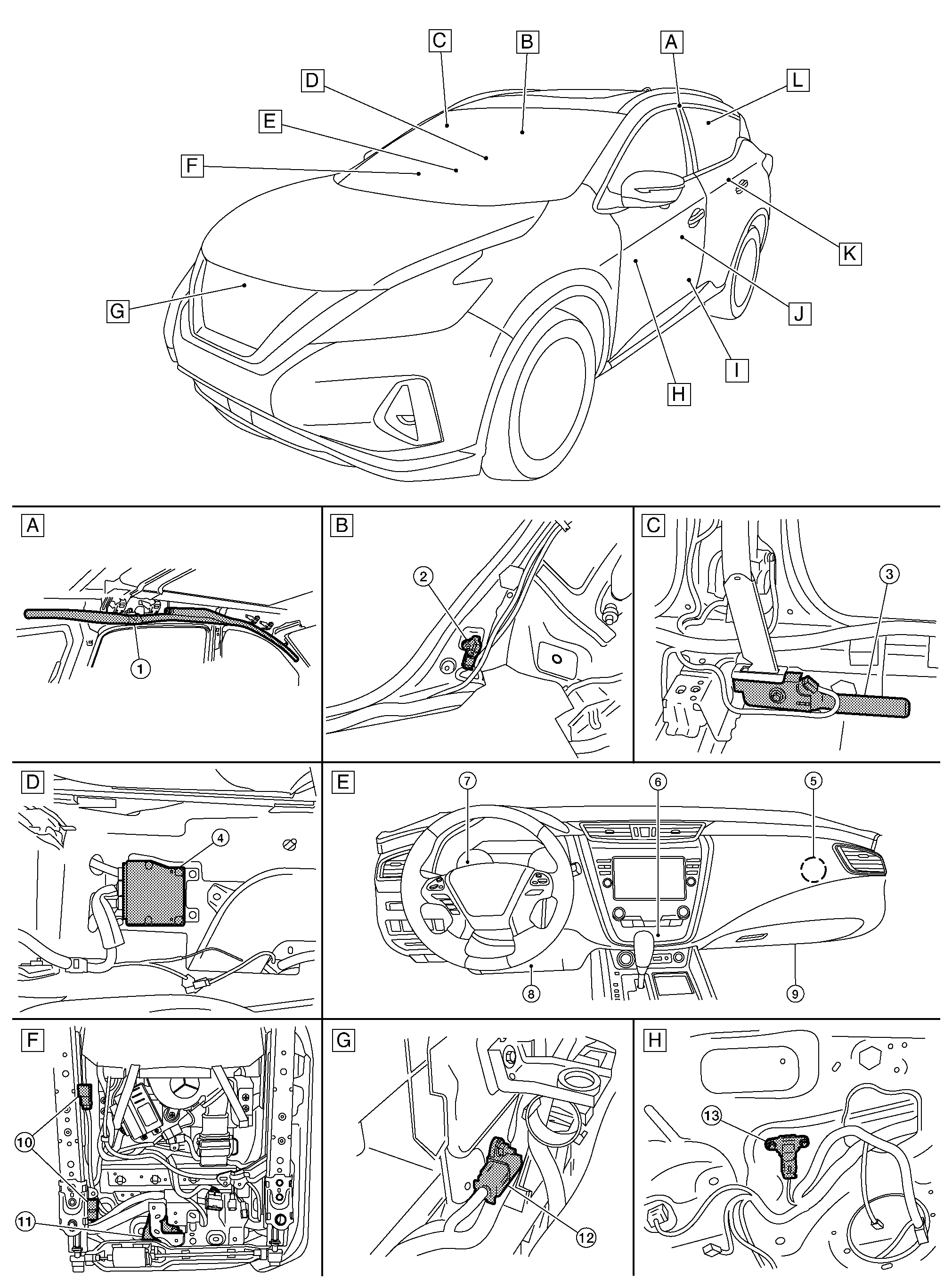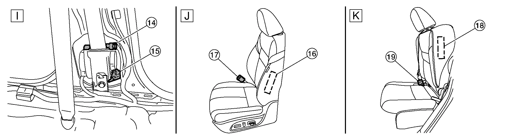 | J. | Driver seat | K. | Rear seat (drivers side) | L. |
