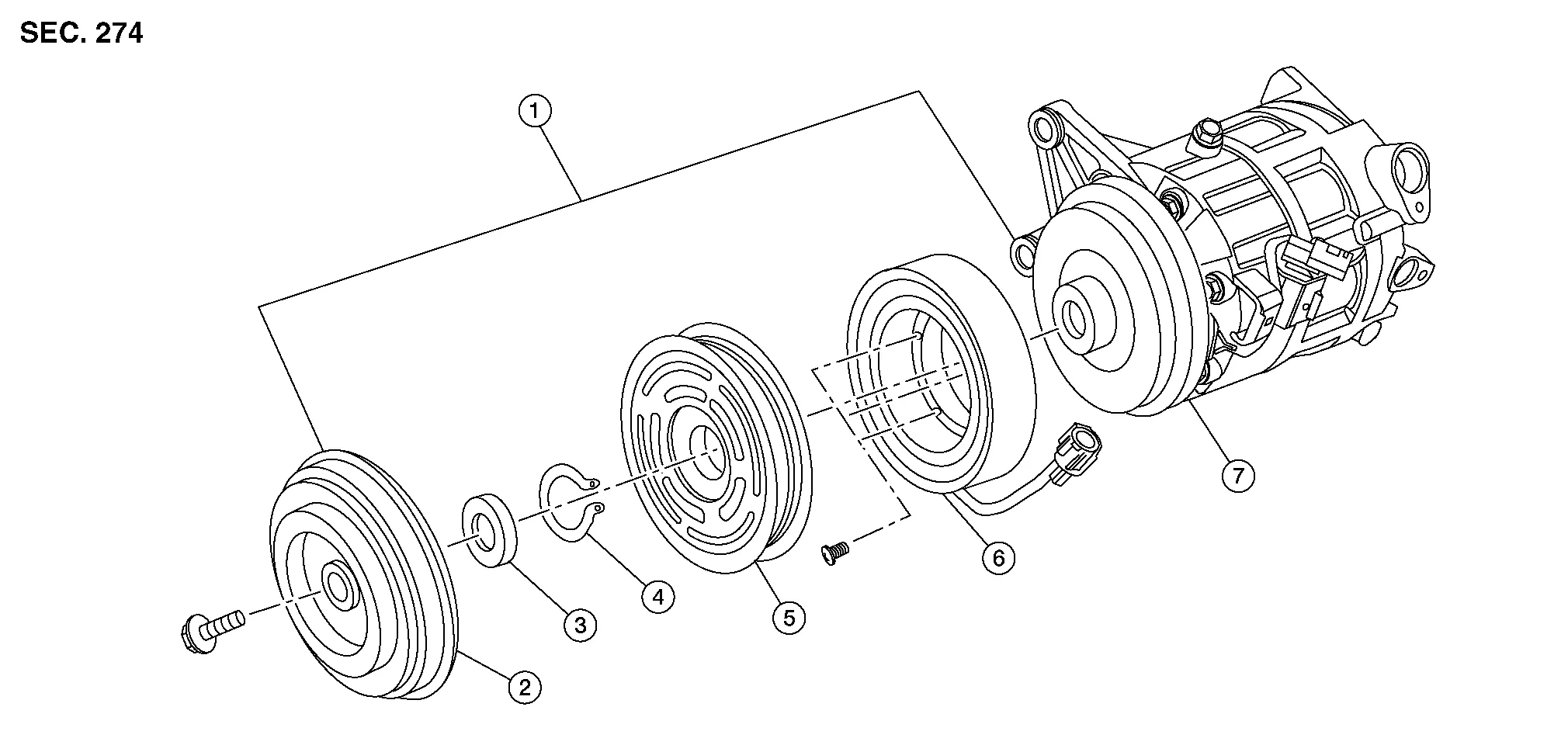 | 1. | Magnet clutch assembly | 2. | Clutch disc | 3. | Shim |