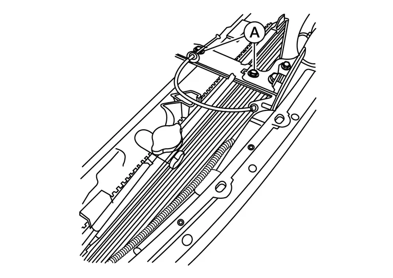Remove the radiator core support center brace bolts (A) then remove the radiator core support center brace.