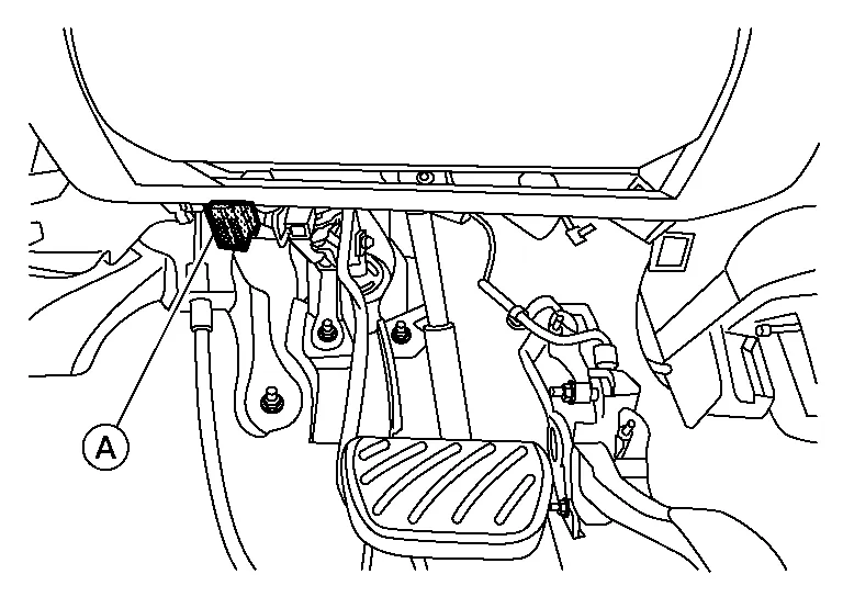 When CONSULT is connected with a data link connector (A) equipped on the vehicle side, it will communicate with the control unit equipped in the Nissan Murano vehicle and then enable various kinds of diagnostic tests.