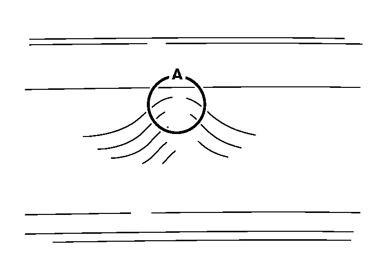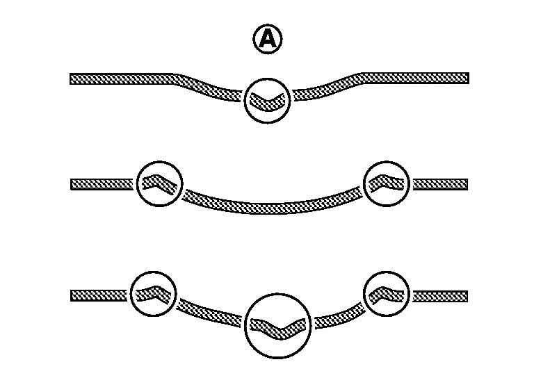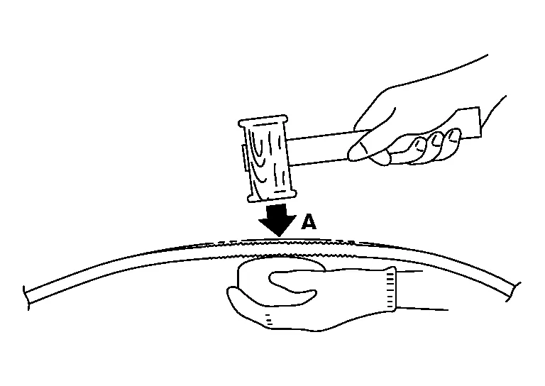 (a) Using a hammer and dolly, flatten the lowest portion (A) where the plastic deformation exists, so that the flattened surface is not higher than the original surface.