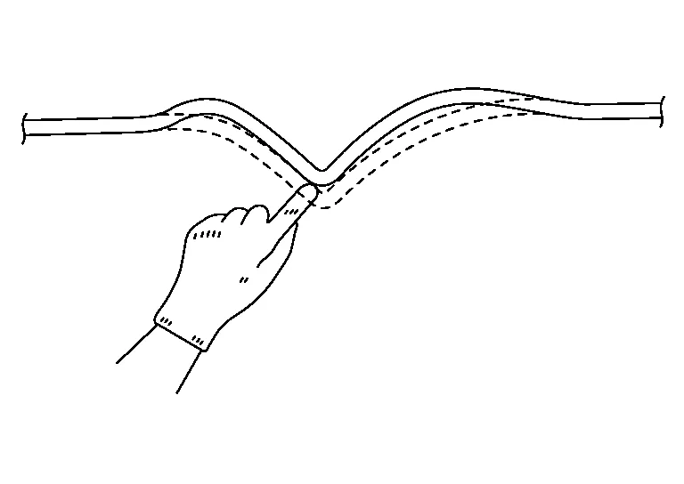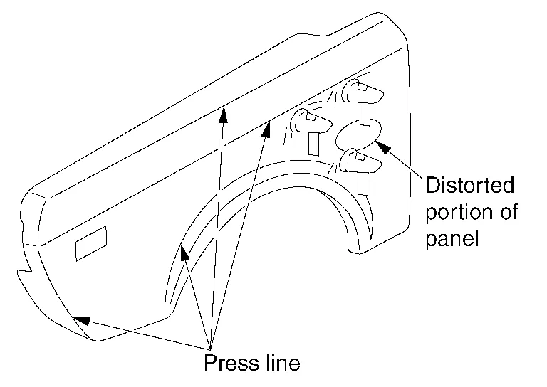 (a) Panel distortion occurs when panel damage is repaired. The panel is deformed within the range of elastic deformation. If pressed with a finger, the deformed area bends inward and outward. Panel irregularities occurring over a wide range other than the repaired portion may also indicate panel distortion.