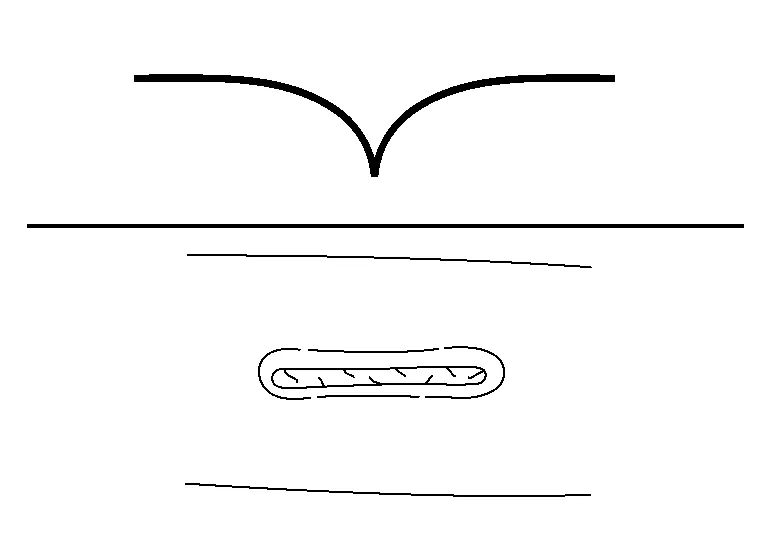 (c) If the external force continues to increase, breaks around the dent enlarge, and the sheet metal at the center of the dent stretches.