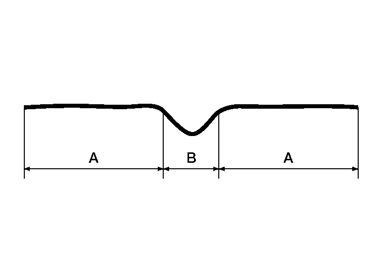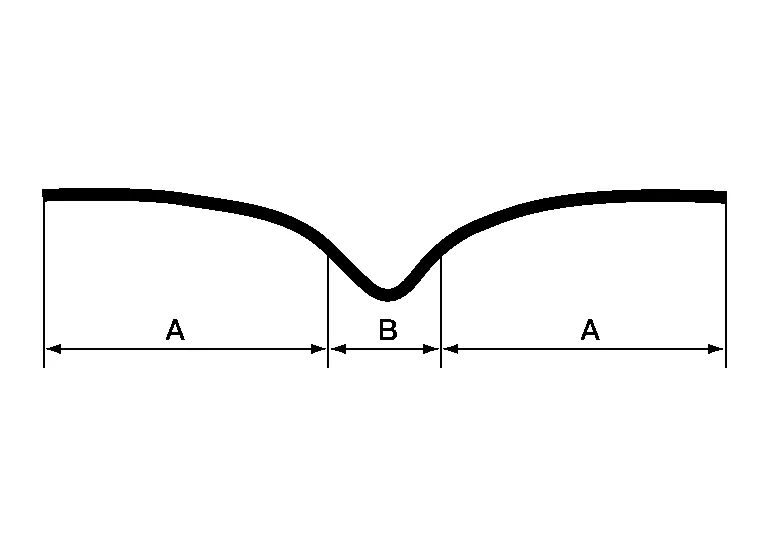 A sharp dent is made out of two parts: The Center (A), which is formed by the object which made the dent (stretched metal) and the second part of the dent (B), which is from the energy of the hit.