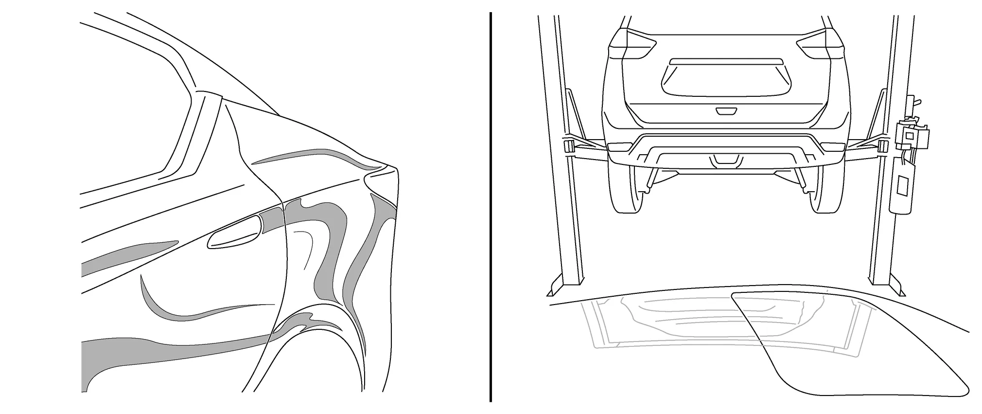 (a) Apply the dolly to the elastic deformation area behind the panel. Hit the plastic deformation area with a hammer so that the elastic deformation area is lower than the original surface.