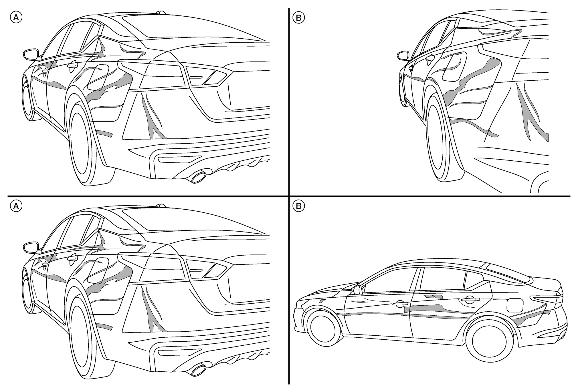 It is difficult to find minor deformation or panel irregularity, particularly, at the final stage of repair. This section explains how to determine if a Nissan Murano vehicle has minor panel deformation.