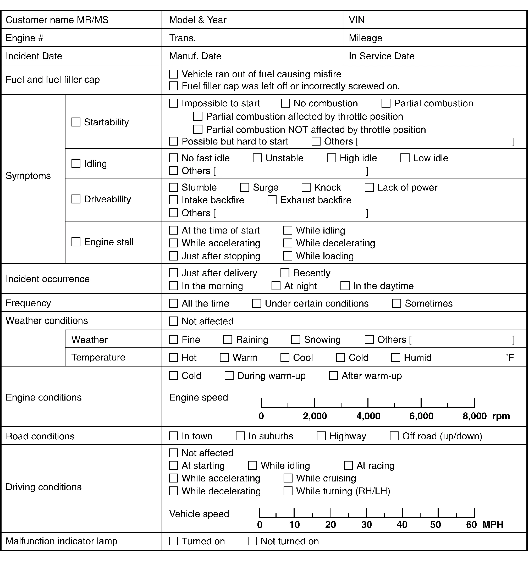 Get the detailed information from the customer about the symptom (the condition and the environment when the incident/malfunction occurred) using the “Diagnostic Work Sheet”. (Refer to Diagnostic Work Sheet.)
