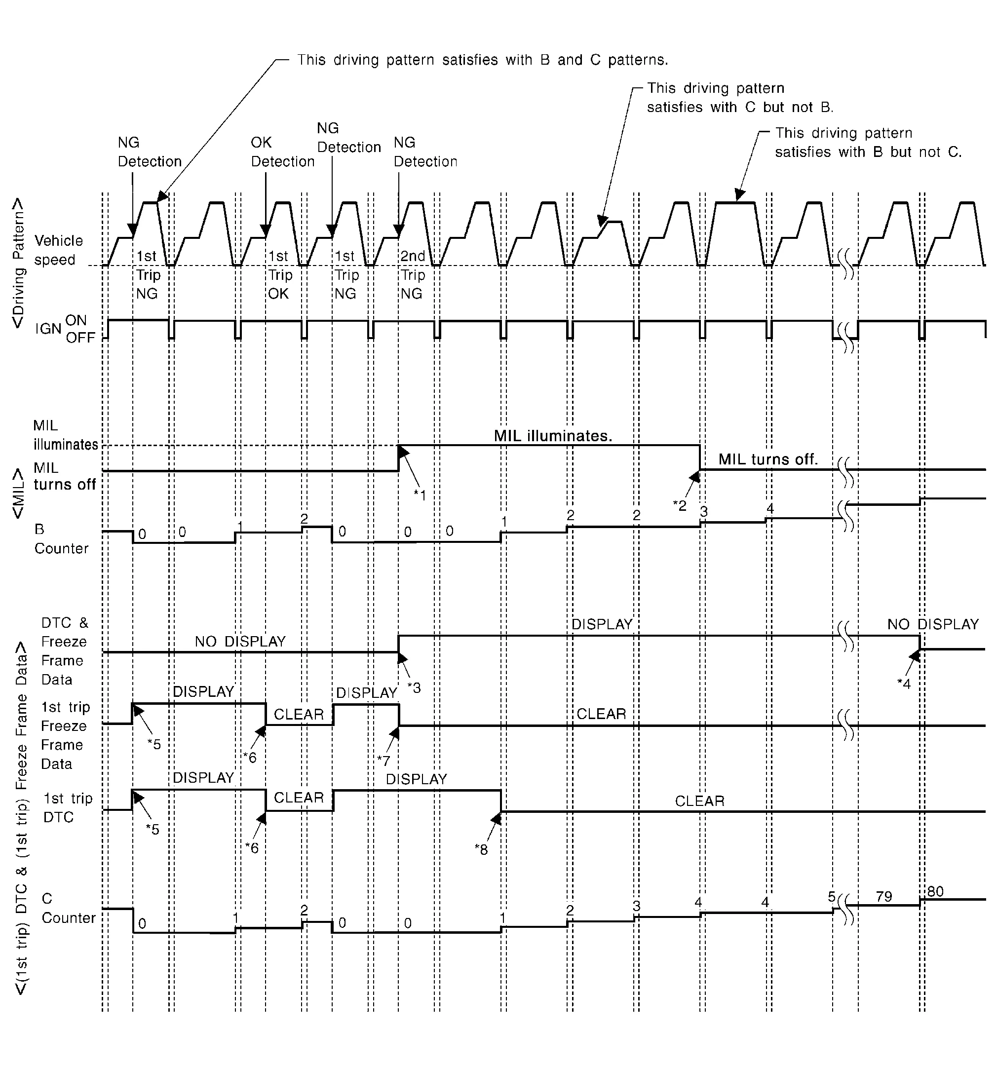 | 1st Trip DTC (clear) | 1 (pattern C), *1 | 1 (pattern C), *1 | 1 (pattern B) |