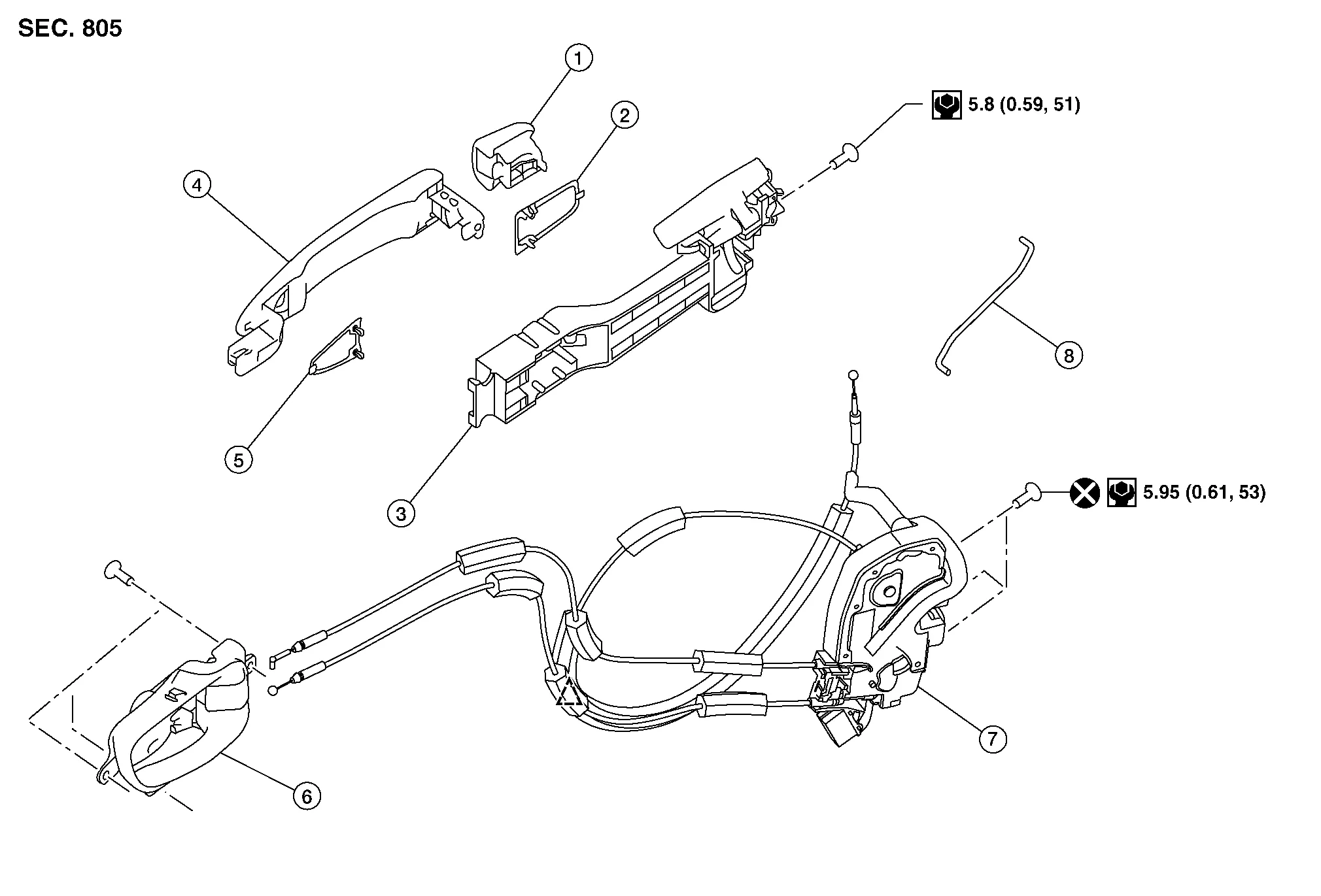 | 7. | Front door lock | 8. | Door key cylinder rod | ![]() |
