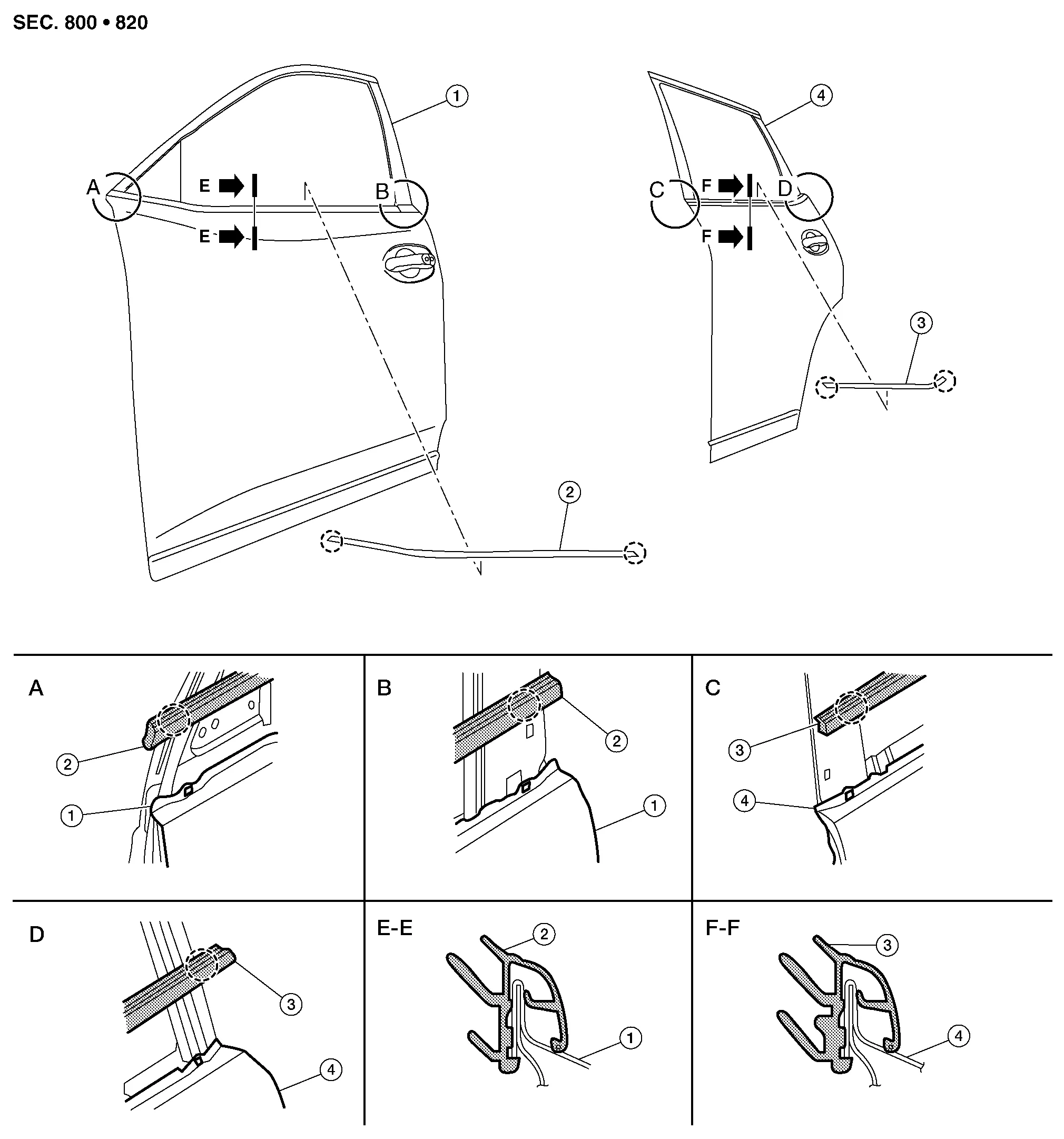 Nissan Murano: Exterior :: Removal and Installation / Door Outside Molding