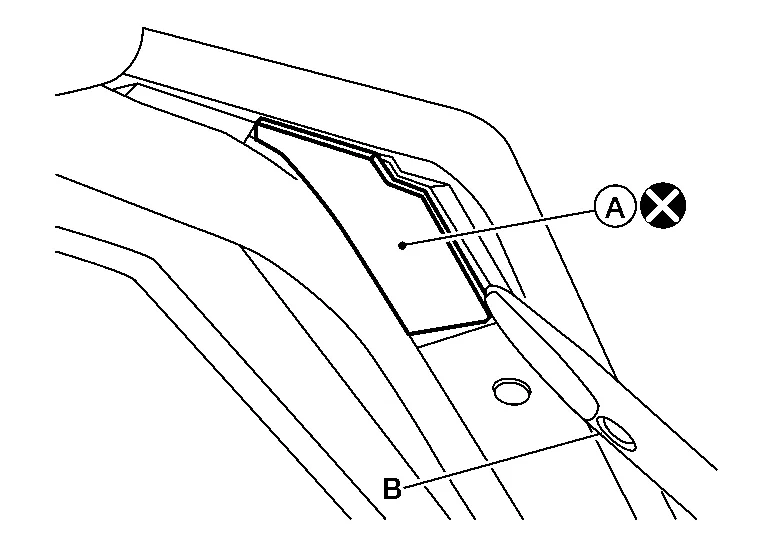 Remove rear door rear sash molding clip (A) using a suitable tool (B).