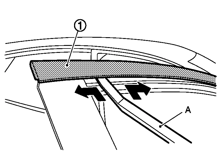 Using a suitable tool (A), release front door sash molding (1) as shown and remove.