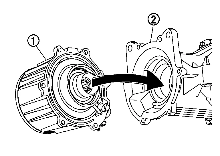Join electric controlled coupling assembly (1) to spline of drive pinion, then install it to final drive assembly (2).