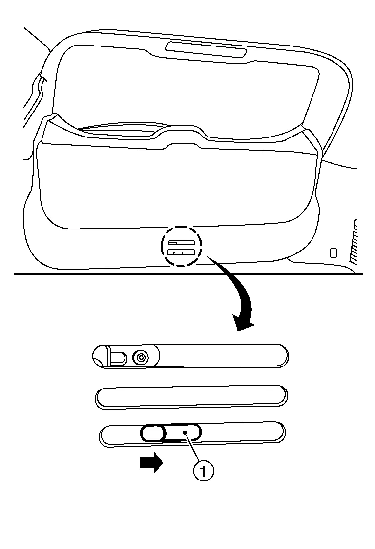 From inside vehicle, rotate emergency lever (1) in direction shown to unlock.