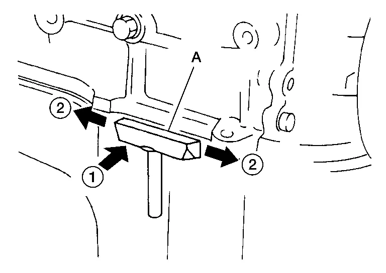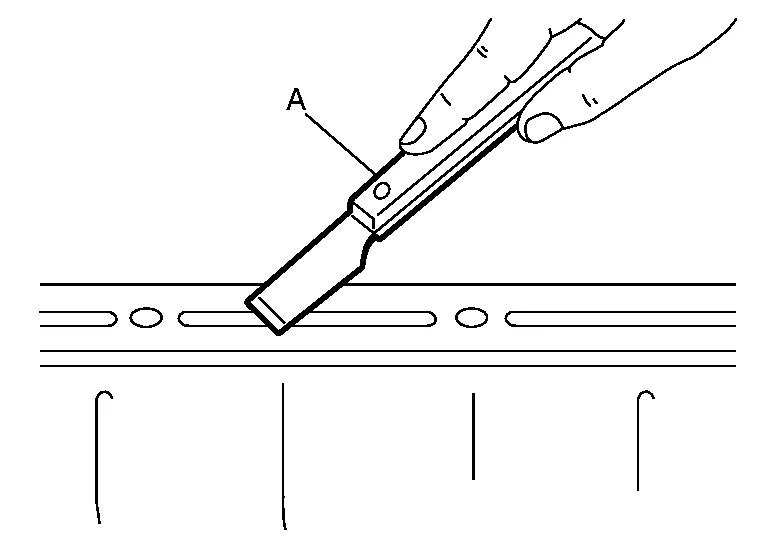 Using suitable tool (A), remove old liquid gasket adhering to the liquid gasket application surface and the mating surface.