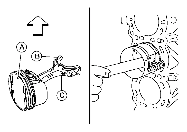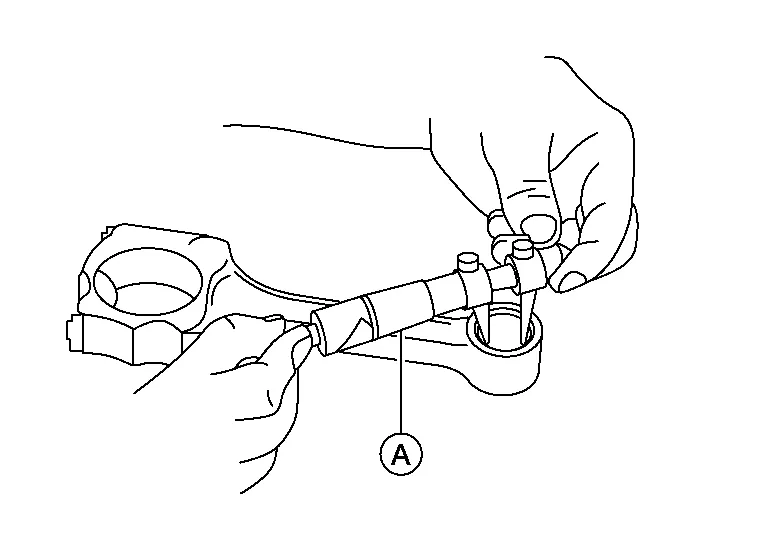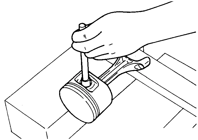 Push out the piston pin with a suitable tool with an outer diameter of approximately 20 mm (0.8 in).