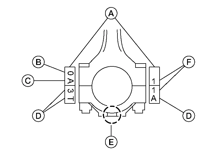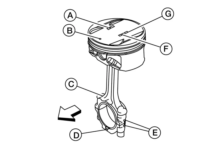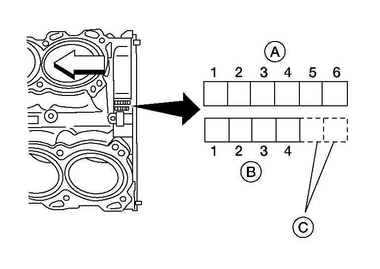 | 31. | Cylinder block heater (if equipped) | A. | Crankshaft side | B. | Chamfered |